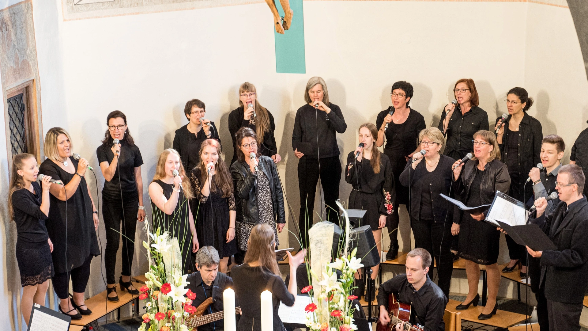 Die Proben finden abwechselnd montags um 19.30 Uhr bzw. dienstags um 20 Uhr im Gemeindehaus statt.